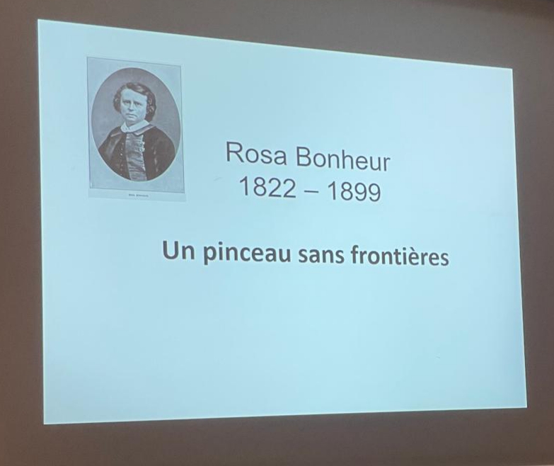 Le 7 avril 2026, Madame Eliane Foulquié, Présidente des Amis de Rosa Bonheur, a animé une conférence sur la célèbre peintre animalière, au grand talent qui a pu vivre de son art au XIXe siècle.